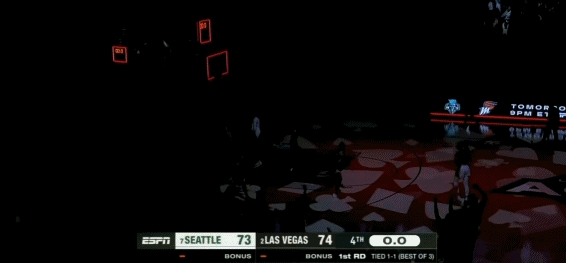 风暴队最后一攻连续传递,最后加比-威廉姆斯底角出手后,王牌队主场灯灭了。